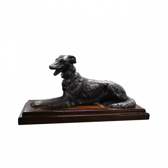 Il fedele amico a quattro zampe non può mancare dalla nostra collezione di bronzo animale. Il cane si sdraia con il suo proprietario e ha una postura calma.
