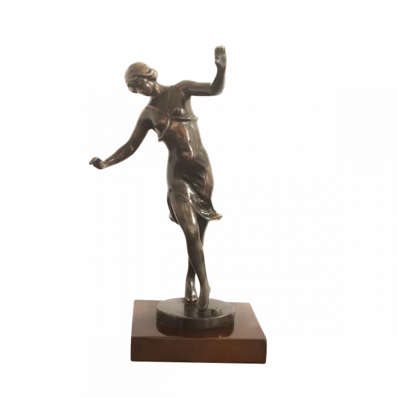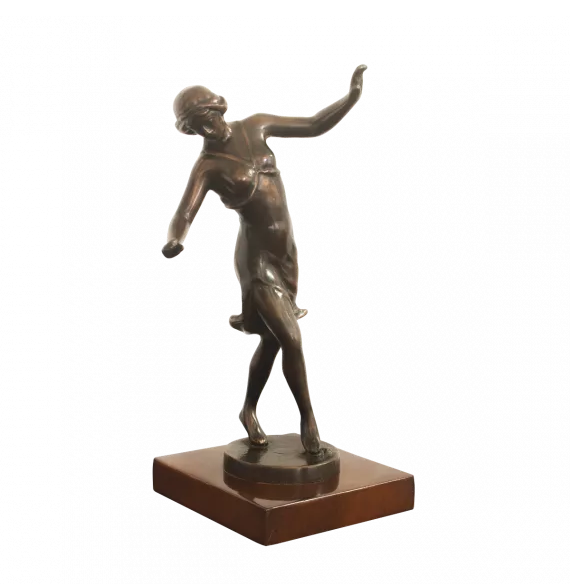 Signora danzante colore antico. Questa donna danzatrice è una scultura unica per la tua collezione o spazio. La sua elegante posizione di danza è quella del balletto e trasmette un'atmosfera classica.