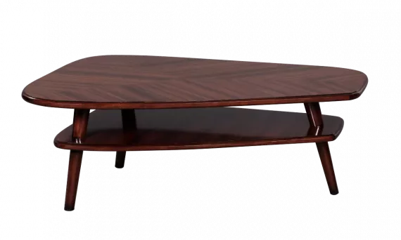Tavolino da caffè Boogie Woogie. Boogie Woogie porta un'atmosfera retrò contemporanea nel tuo ambiente interno. Ha un design unico, eccezionale ma funzionale. Questo tavolino da caffetto ha tre sezioni di rivestimento in palissandro sopra.