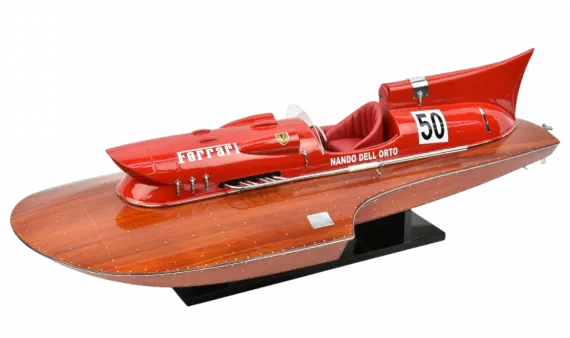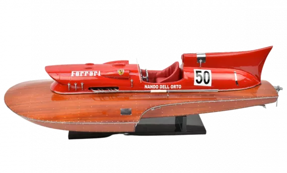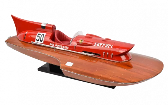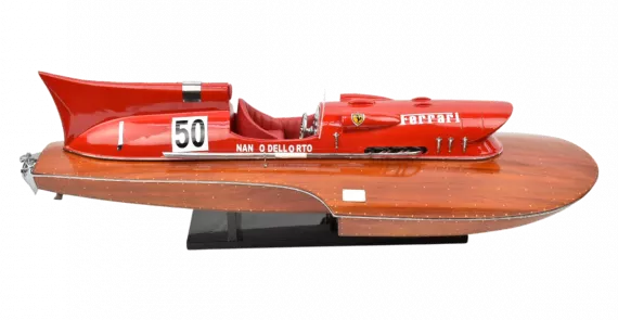 Un motoscafo bellissimo e distintivo che possiede certamente la velocità e l'aspetto di una Ferrari. Un oggetto meraviglioso da esporre nel soggiorno o nel soggiorno del tuo ufficio.